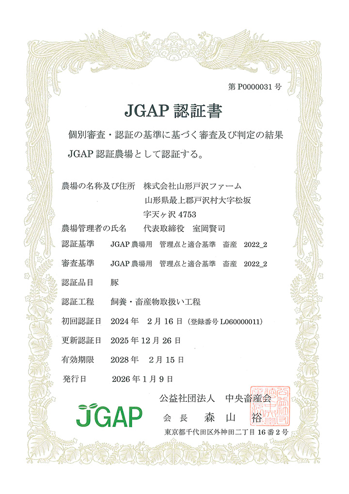 山形県戸沢村で育てられるブランド豚「戸澤豚一番育ち」を豚のストレス解消のため、自然に近い環境の中、安心安全な衛生環境と有機飼料で育てています。