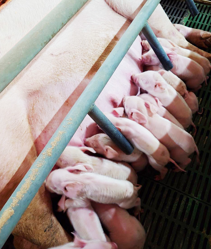 母豚の負担を軽くする設備と見守り体制を整え、安心して出産できる環境を提供。子豚の初期ケアも迅速に行います。